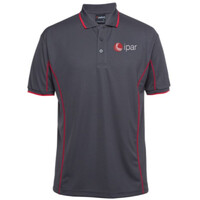 Mens Piping Polo - IPAR Logo - Charcoal/Red IPAR-JB-7PIP